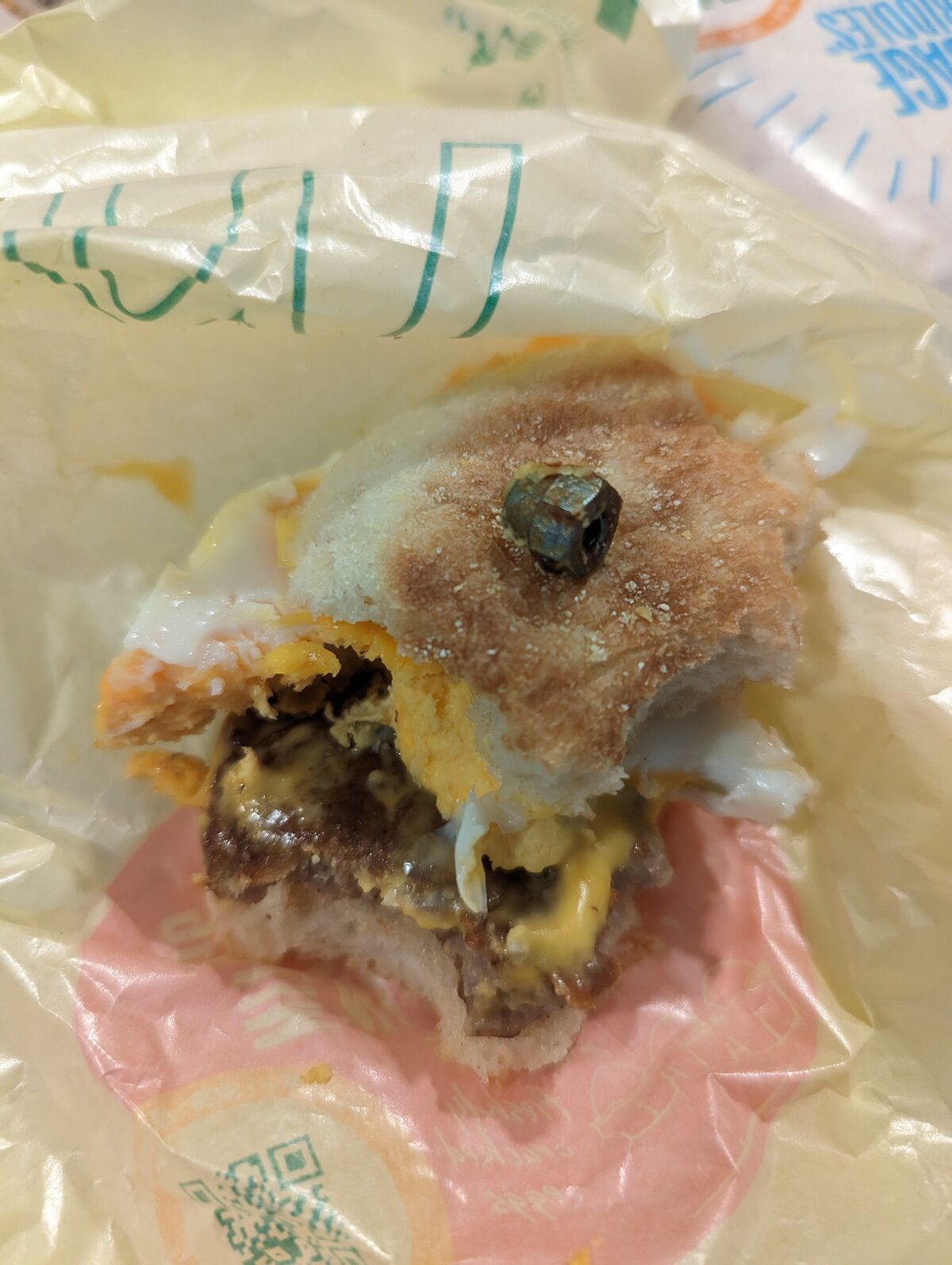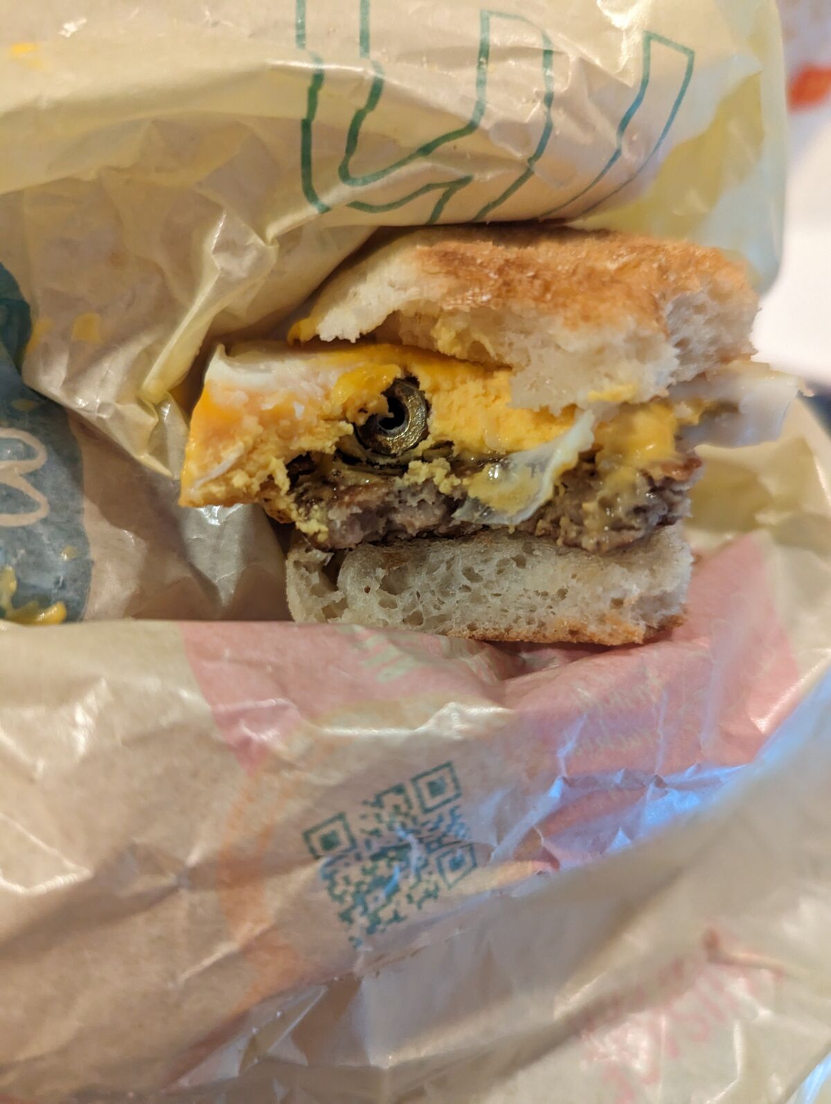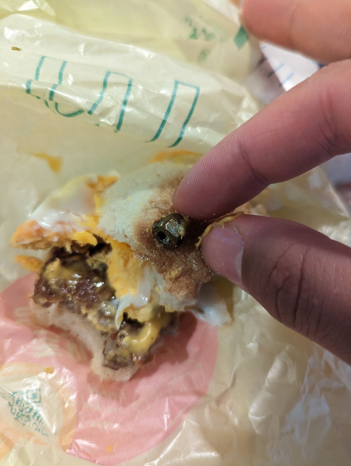 5億年ぶりに朝マック食ってたら卵の部分からナットキャップ出てきた pic.twitter.com/9C68sDOpLE