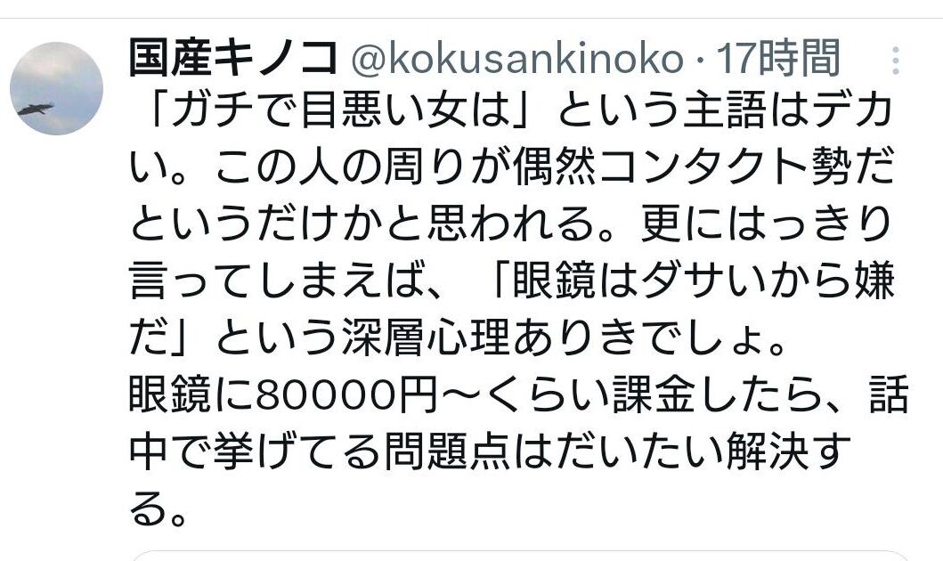 ワイはメガネじゃないけどこういう偏見を助長するような投稿は良くないと思います