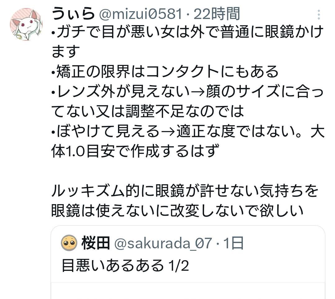 実際に目が悪い人からの意見なのに眼鏡エアプから叩かれるのは可哀想やな