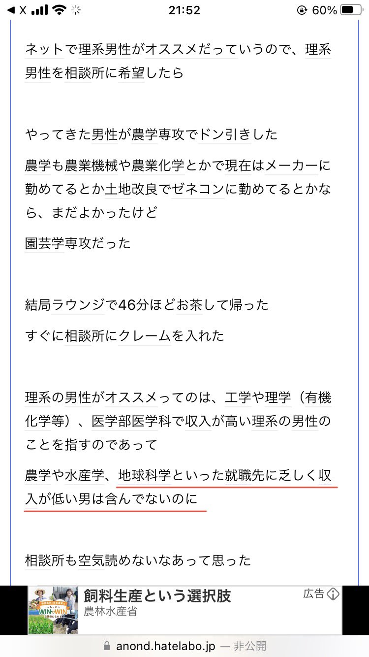 これは農業専攻してて婚活で女にボコボコにされた側の男がネカマして書いてそう