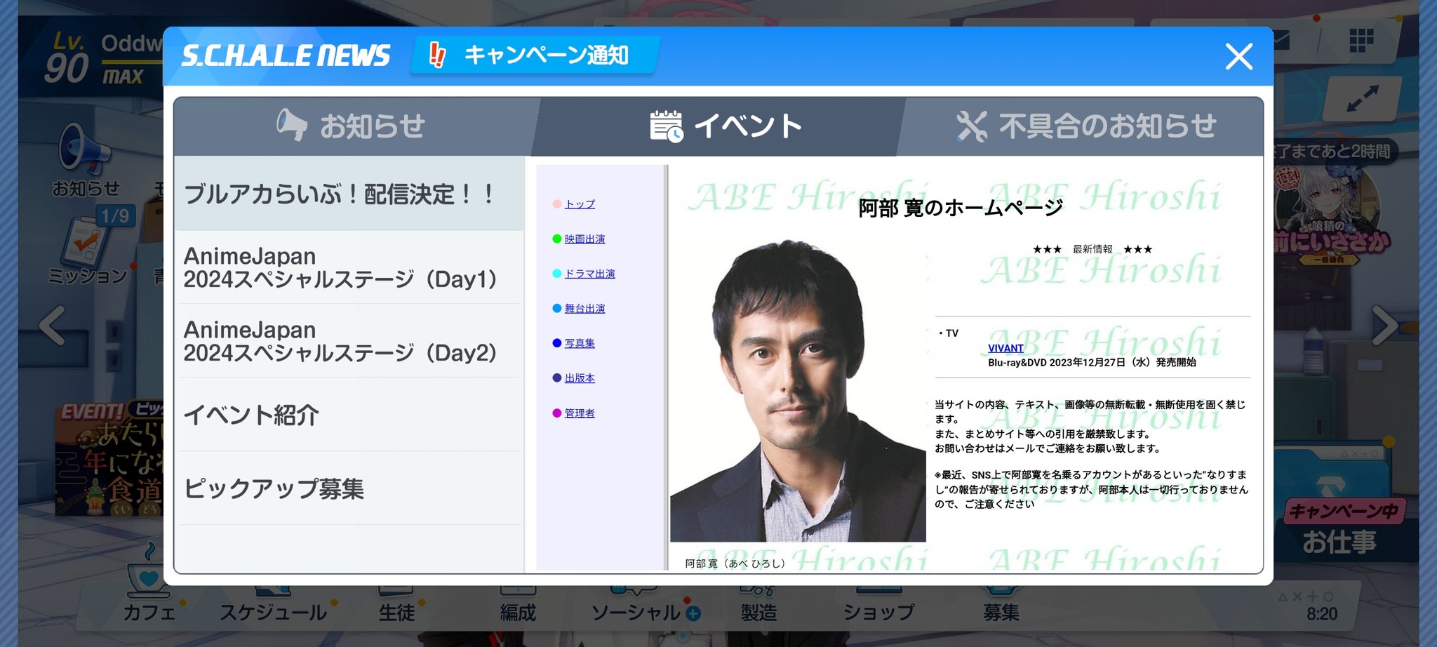 ブルアカのゲーム内に阿部寛が居ると、ちょっと笑っちゃうなwww