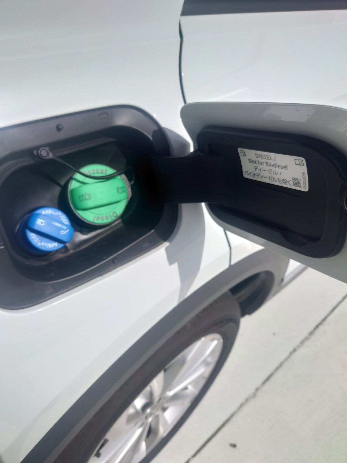 ディーゼル車の給油口は大体こんな感じ。わかりやすく緑のフタになってます。