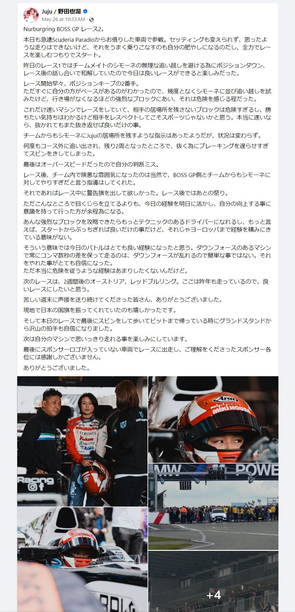 レース後、チーム内で険悪な雰囲気になったのは当然で、BOSS GP側とチームからもシモーネに対してやりすぎだと言う指導はしてくれた。
