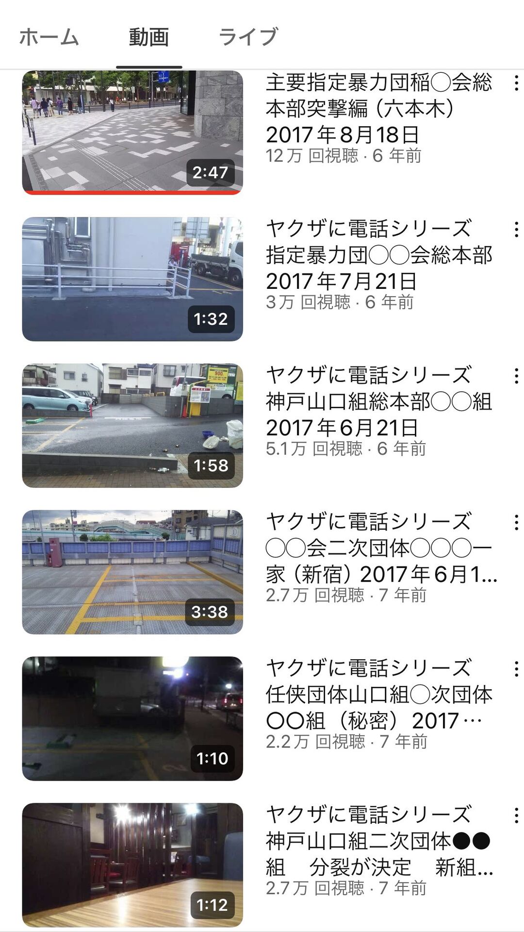ヤクザ事務所周辺を解説しながら徘徊するチャンネル見てる