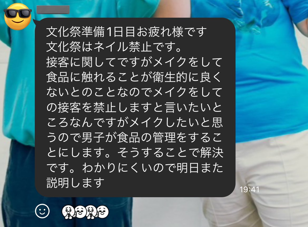 まずこの男子の行動もすごいけど、それ以前に「何故文化祭でネイルやメイクが禁止か」をきちんと説明してくれてる所が良いと思う。ただ禁止するだけで合理的な理由を伝えようとしない学校が多いのに。