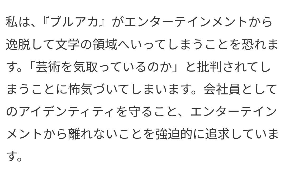 ブルアカが文学にならないよう敢えてエンタメに寄せてた模様