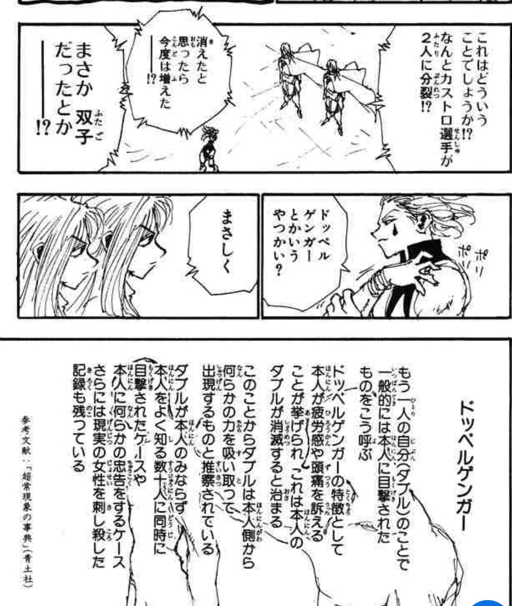 石丸さんの言う通り、カストロの念能力は「分身(ダブル)」なんだけど
