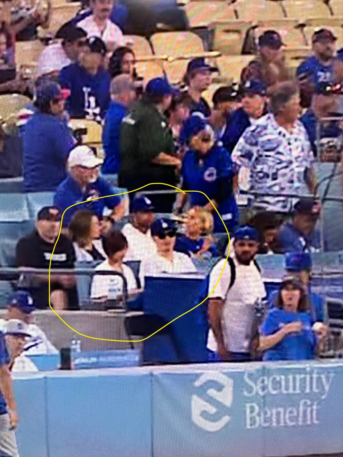 後ろの席の陽気なドジャースファンのおじさんが