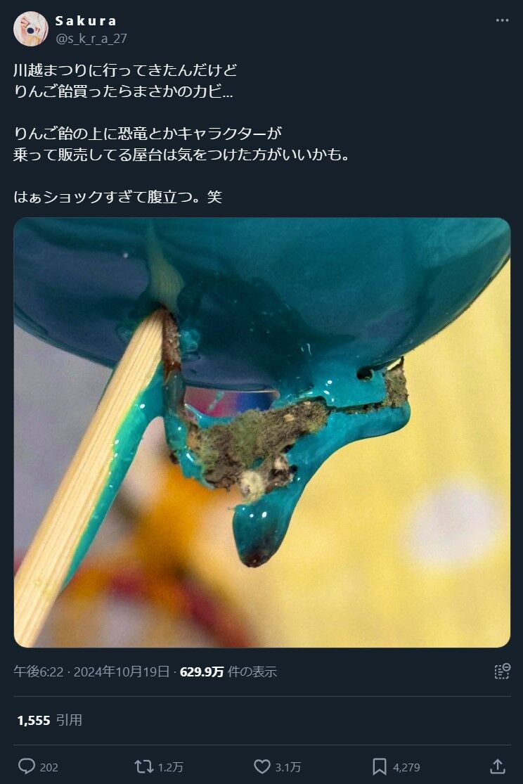 りんご飴買ったらまさかのカビ…