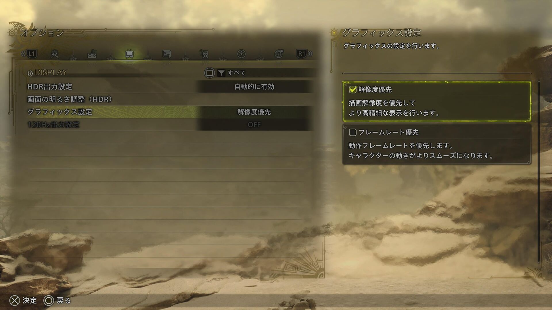 モンハンワイルズ グラフィック設定あり!解像度優先、フレームレート優先、さらに120hz対応してます!