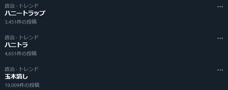 Xでは『ハニートラップ』『ハニトラ』など玉木氏不倫報道に関するワードが複数トレンド入り
