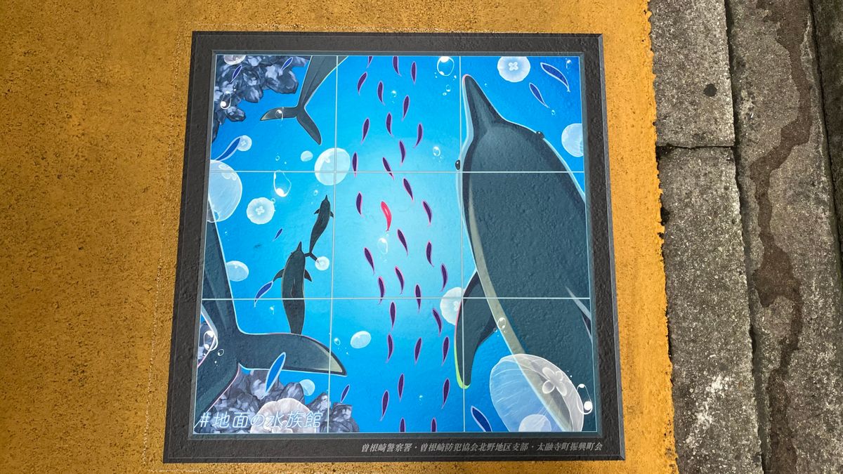 黄色の塗装は、警察庁「科学警察研究所」の専門家のアドバイスのもと、派手な色にすることで、暗い路地のイメージを少しでも明るくする狙いがあるといい、デザインを学ぶ地元の専門学生が考えた「水族館」をイメージしたイラストなども路上に配置されました。