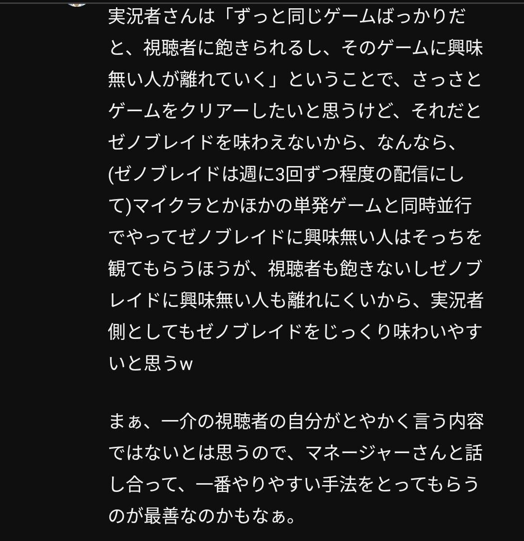 布団ちゃんも「ゼノブレやりたい」って言ったら何人もの信者から早くやるよう催促のDMが届くようになってキモいから結局やらなかったんだよな