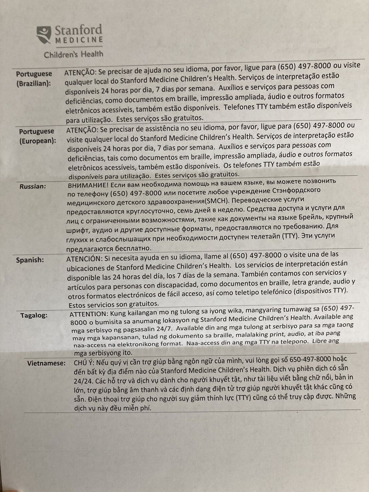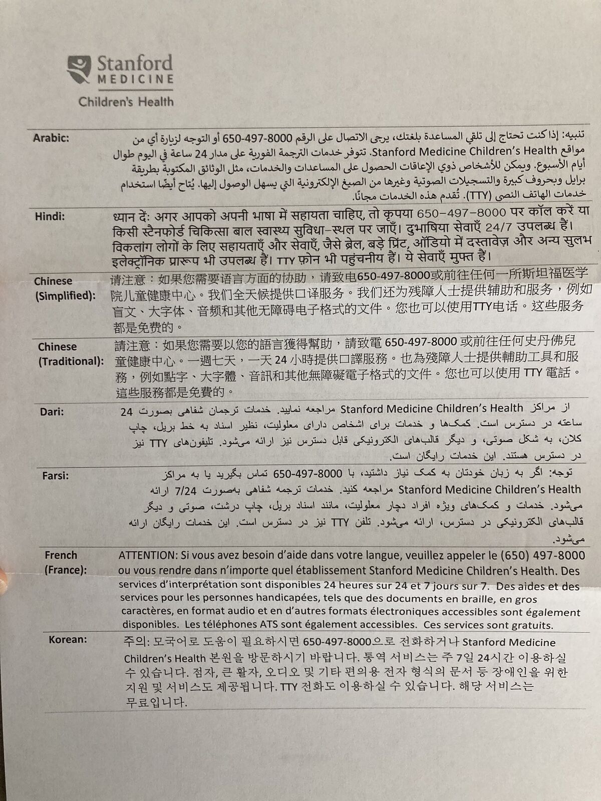 これも(スタンフォード大学病院に子どもを連れていった後に、病院から送られてきたアンケート)悲しいです(泣)