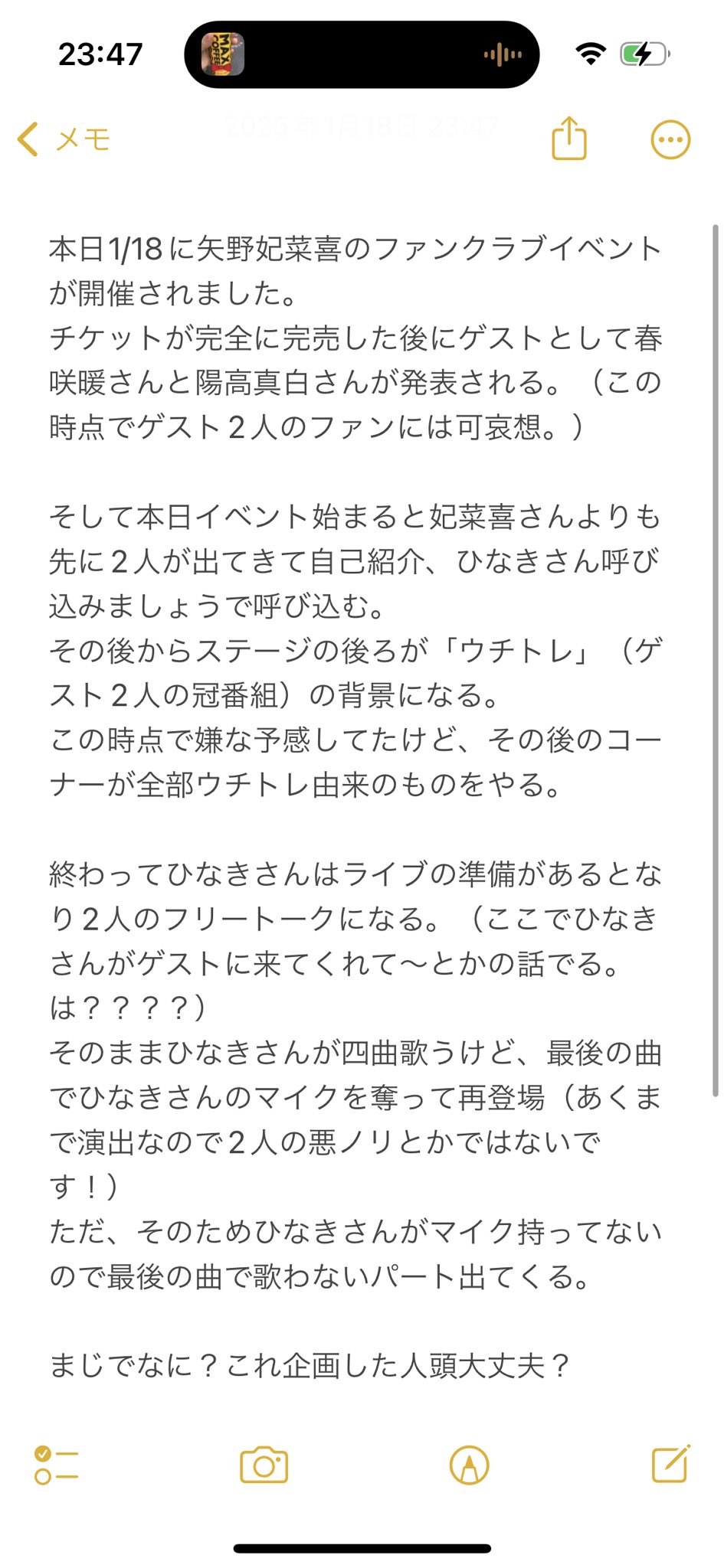 ひなきちゃんのファンは優しい!!!じゃないんだよ。ひなきちゃんのファンクラブイベってお金払って来てみたら他のイベント始まるの許せるならそれはもう違うでしょ