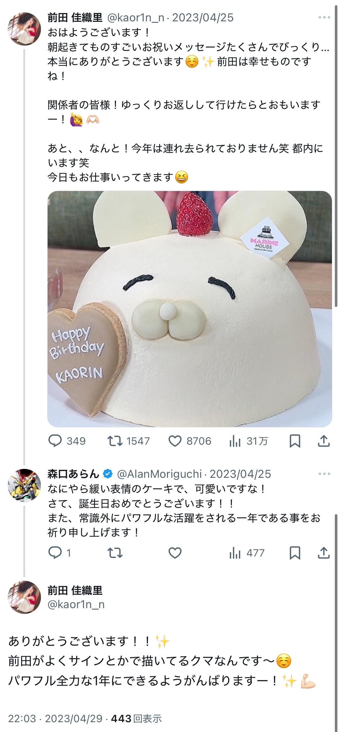 ■前田佳織里さんのXより