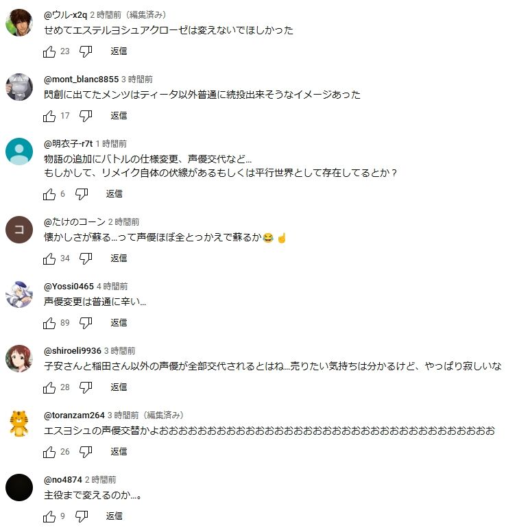 そもそもフルボイスリメイクやったのが10年前で、4,5年前まで普通に続投してた中での突然の声優入れ替え、しかも微妙に旧声優残しだからそりゃ突っ込まれるでしょ