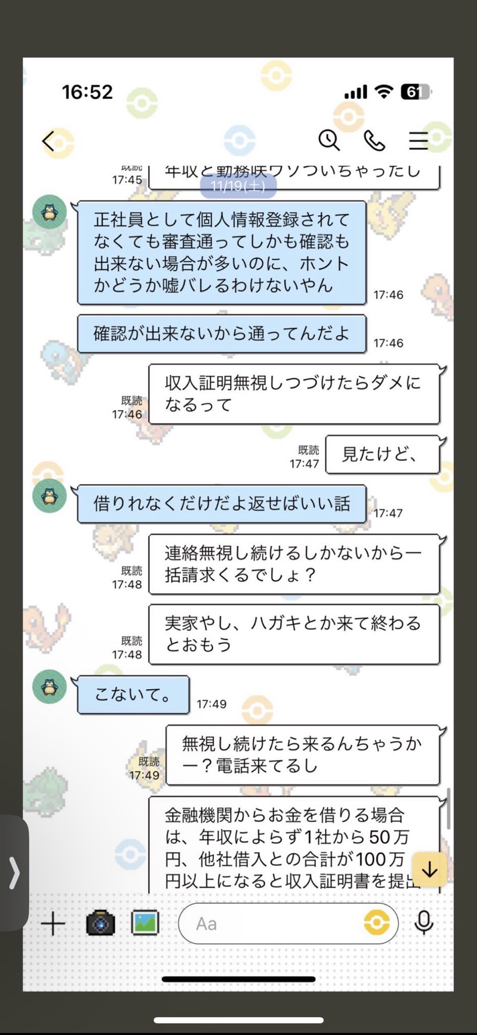 そして画像からは日付はわからなかったが、こんなLINEのやり取りもあった。