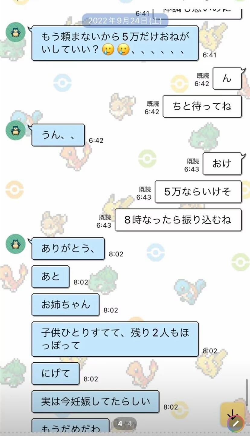 金の無心LINEまでは流れてたものを見たけれど