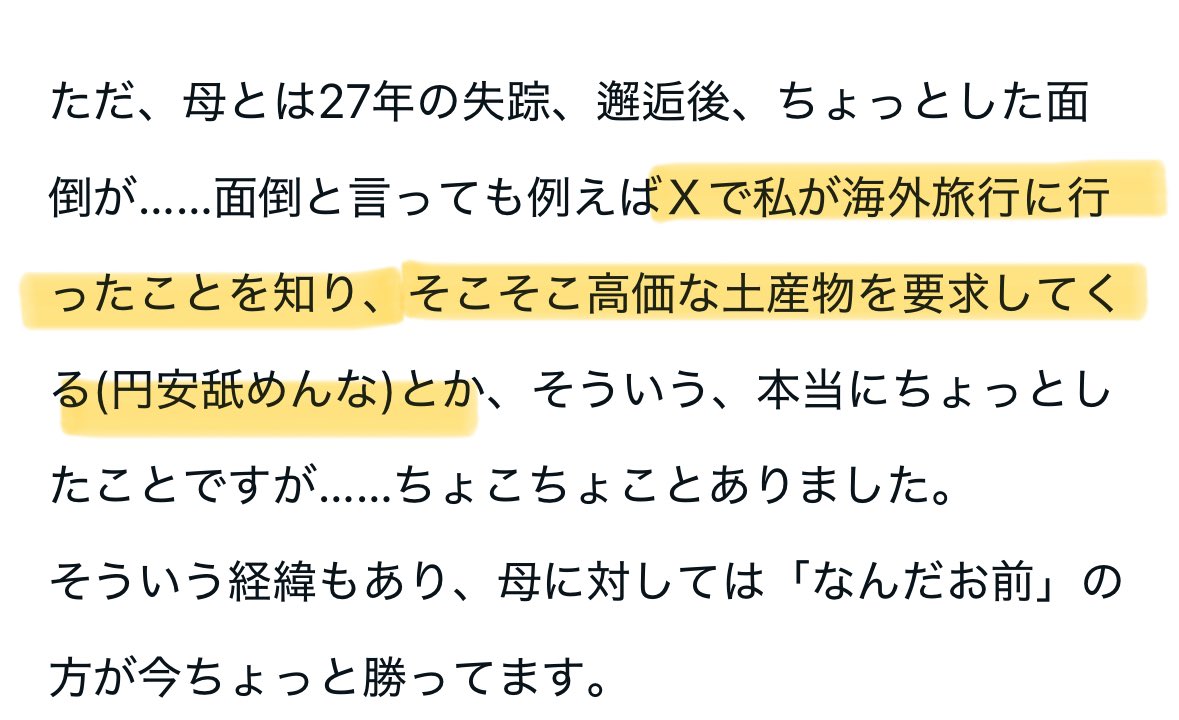 母のことは「好き寄りの嫌い」になりましたとのこと