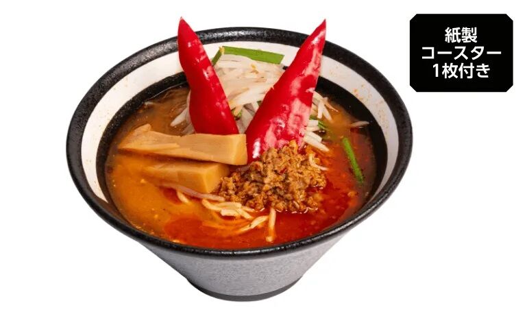 Vアンテナをイメージした赤い唐辛子の乗ったラーメン