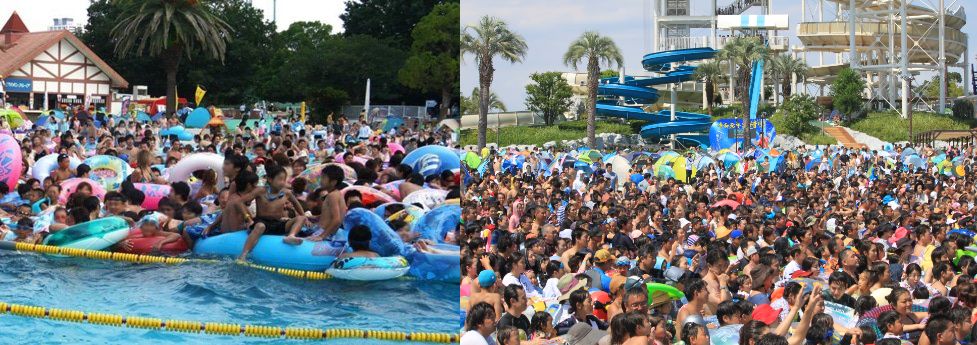 日本の都心から近い海水浴場や大型のプールも昔はよくイモ洗い状態なんて言っていたけど今はそんなに混雑していないのかな?