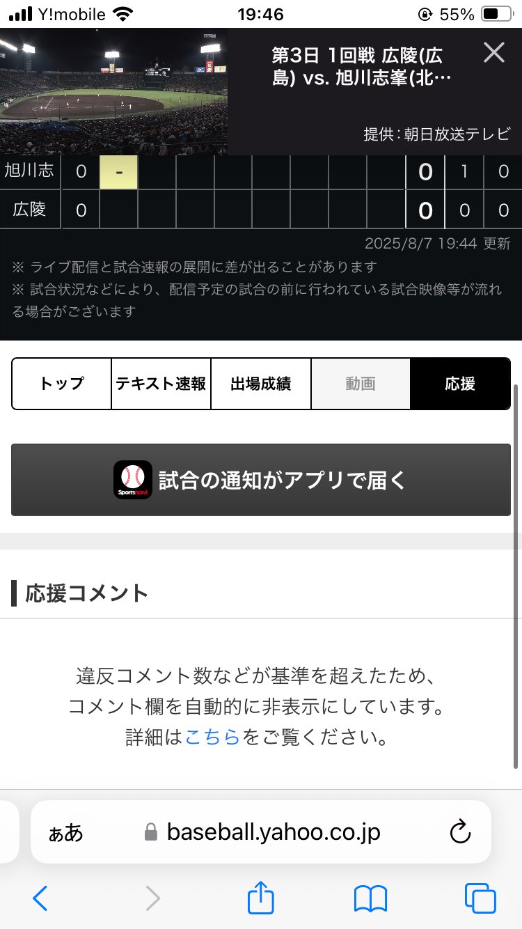 広陵vs旭川志峯の試合、応援コメントでこの表示出てるの初めて見たww pic.twitter.com/aYpSQ3IB0B