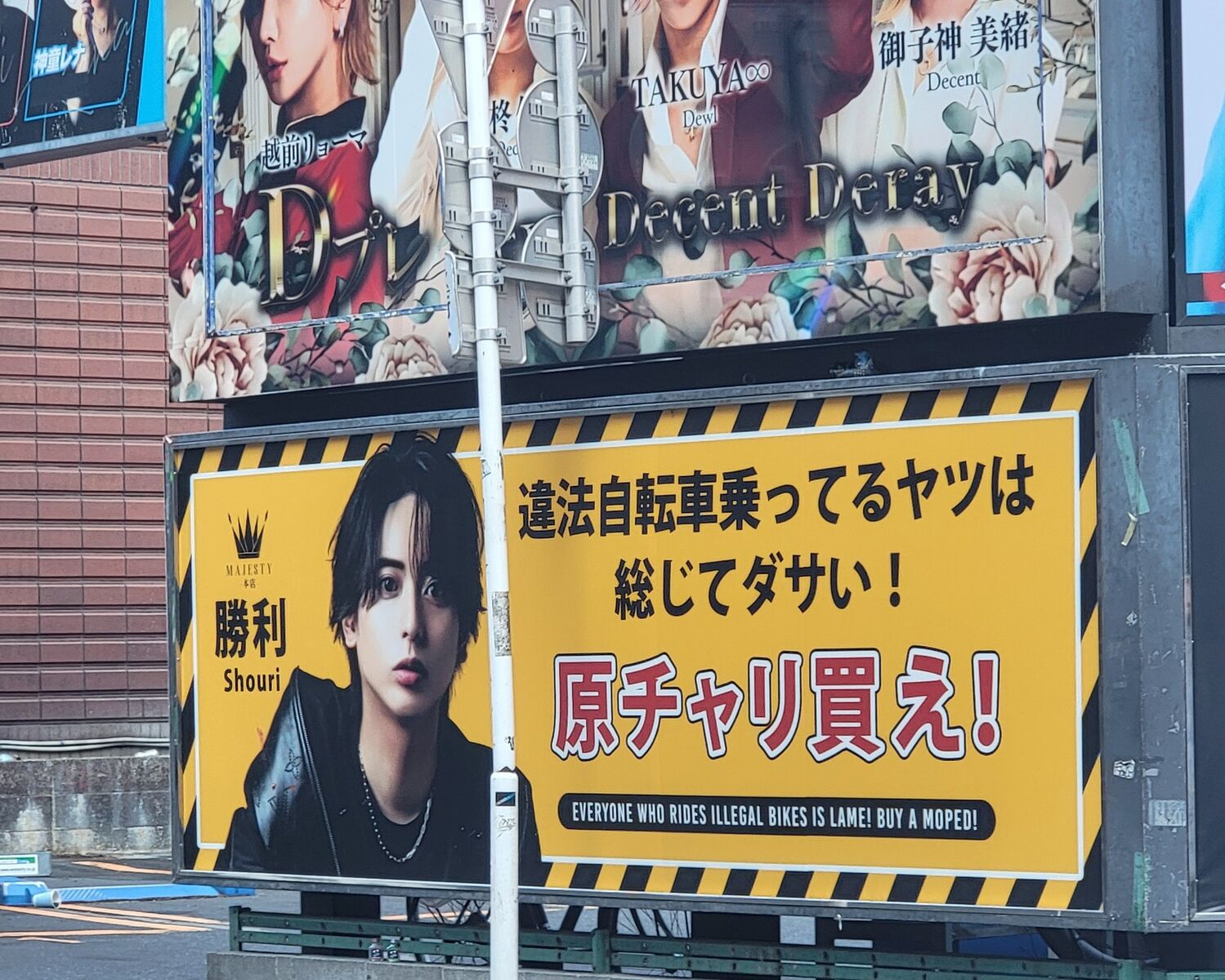 はい、何か月か前に風営法が厳しくなって客引きの常套句だった言葉がいくつも使えなくなったので外国語に代替しようとした、っていう話ですね