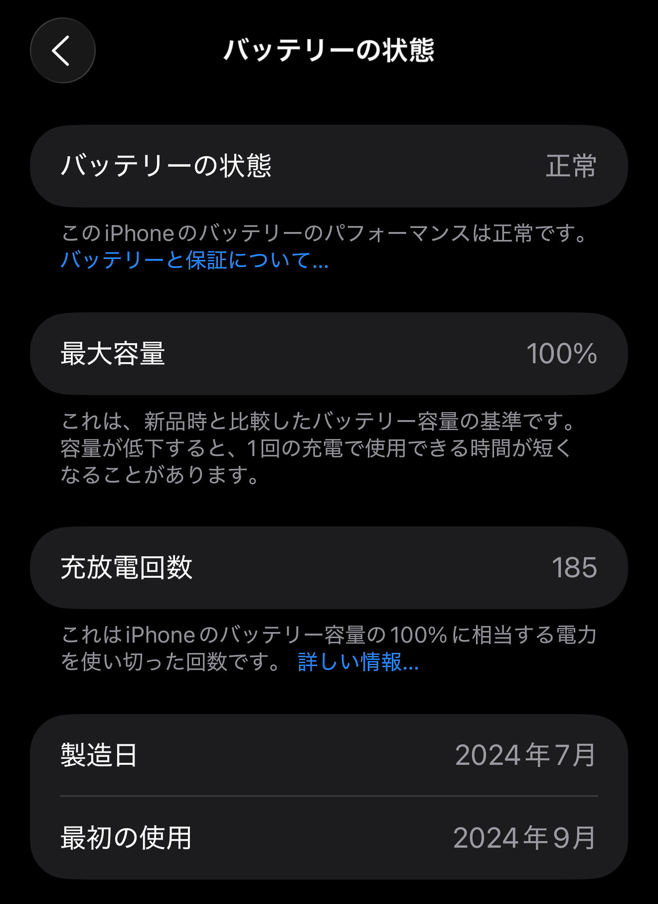 最大充電100%設定で、毎日ゴリゴリに3Dアクションゲーム(電池すぐ無くなる)とかXずっと見てたりを、充電しながらやってたり、めちゃくちゃ消耗しそうなことしてるけど、まだ最大100%のまま。