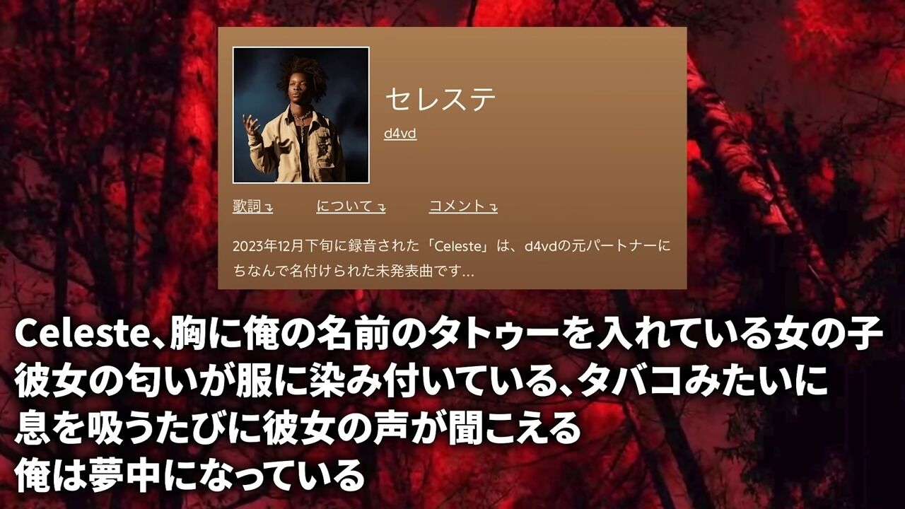 ちな、被害者のCelesteは15歳じゃなくて、2024年の4月5日に13歳で行方不明になって、もし当時生きてたら14歳だったと言われてる。で、d4vdとSNSで初めて知り合ったのか11歳だったって…😱