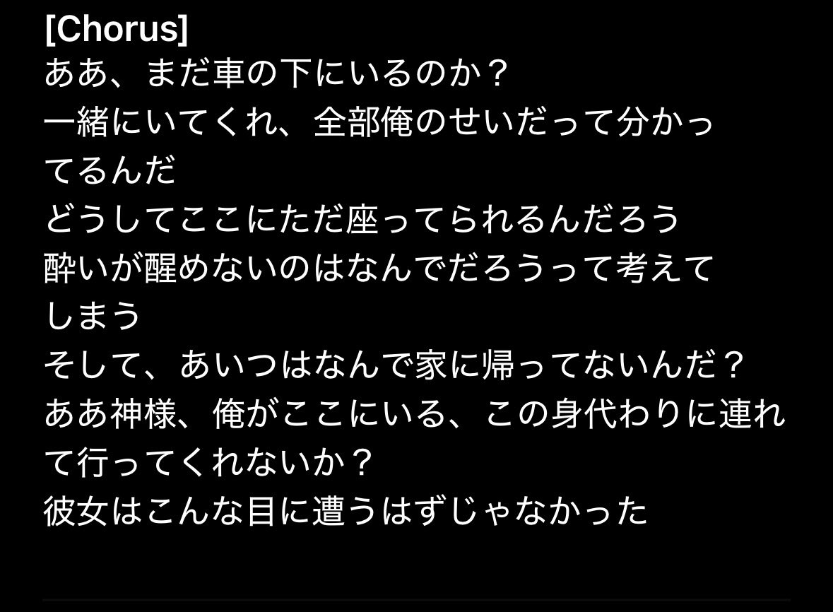 彼女が行方不明になった後に作った曲の和訳怖すぎるよ。