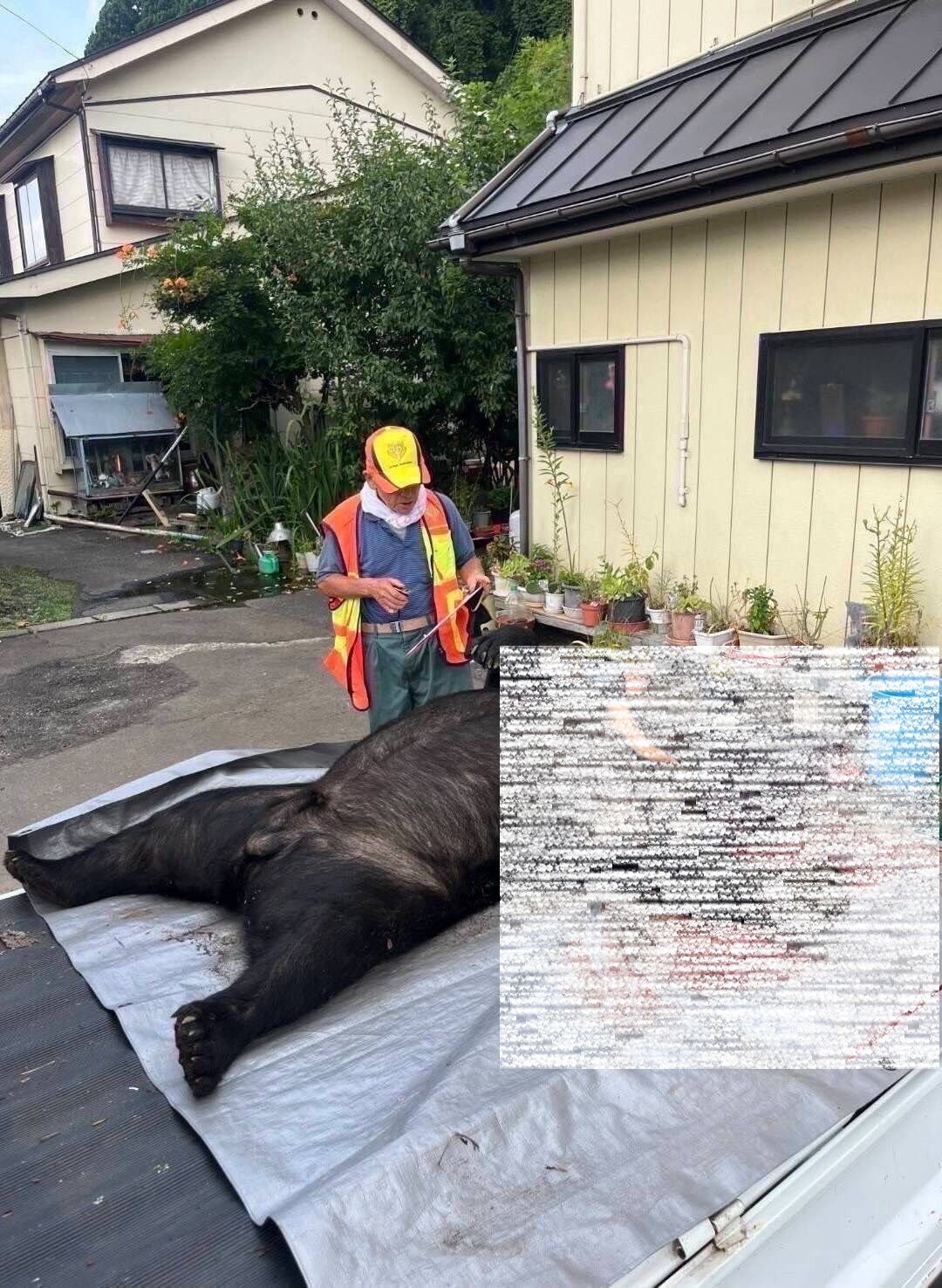 軽トラの荷台に積まれている熊と