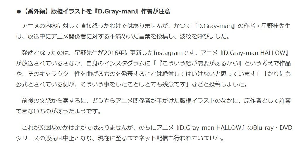 ジャンプアニメだと封神演義が最初に思い浮かぶけど作者が鬼クレームを入れるイメージがわかないのでD.Gray-man辺りが怪しそうですね。 https://t.co/VoQulW9nTJ pic.twitter.com/RZCmFern62