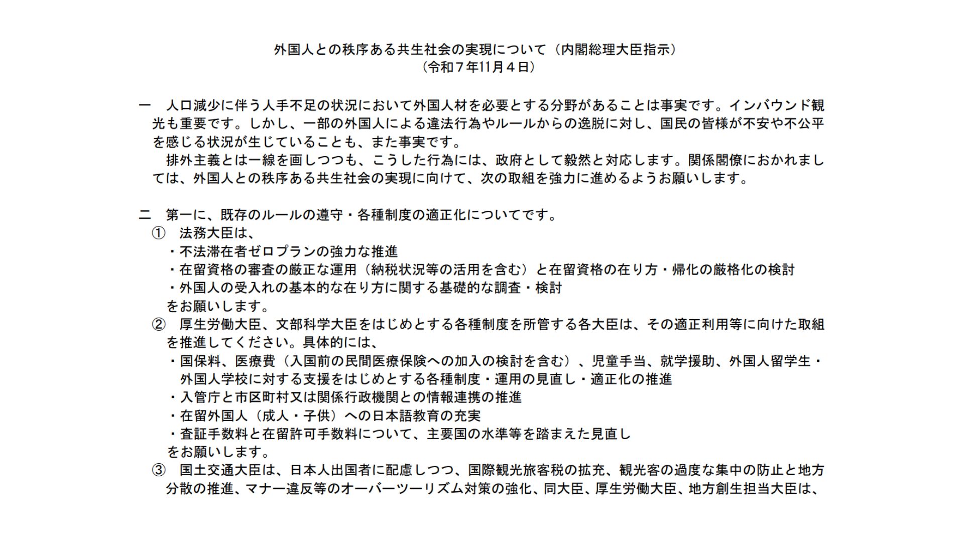 ▼外国人との秩序ある共生社会の実現について(内閣総理大臣指示)はこちら pic.twitter.com/xPQC97tw4a