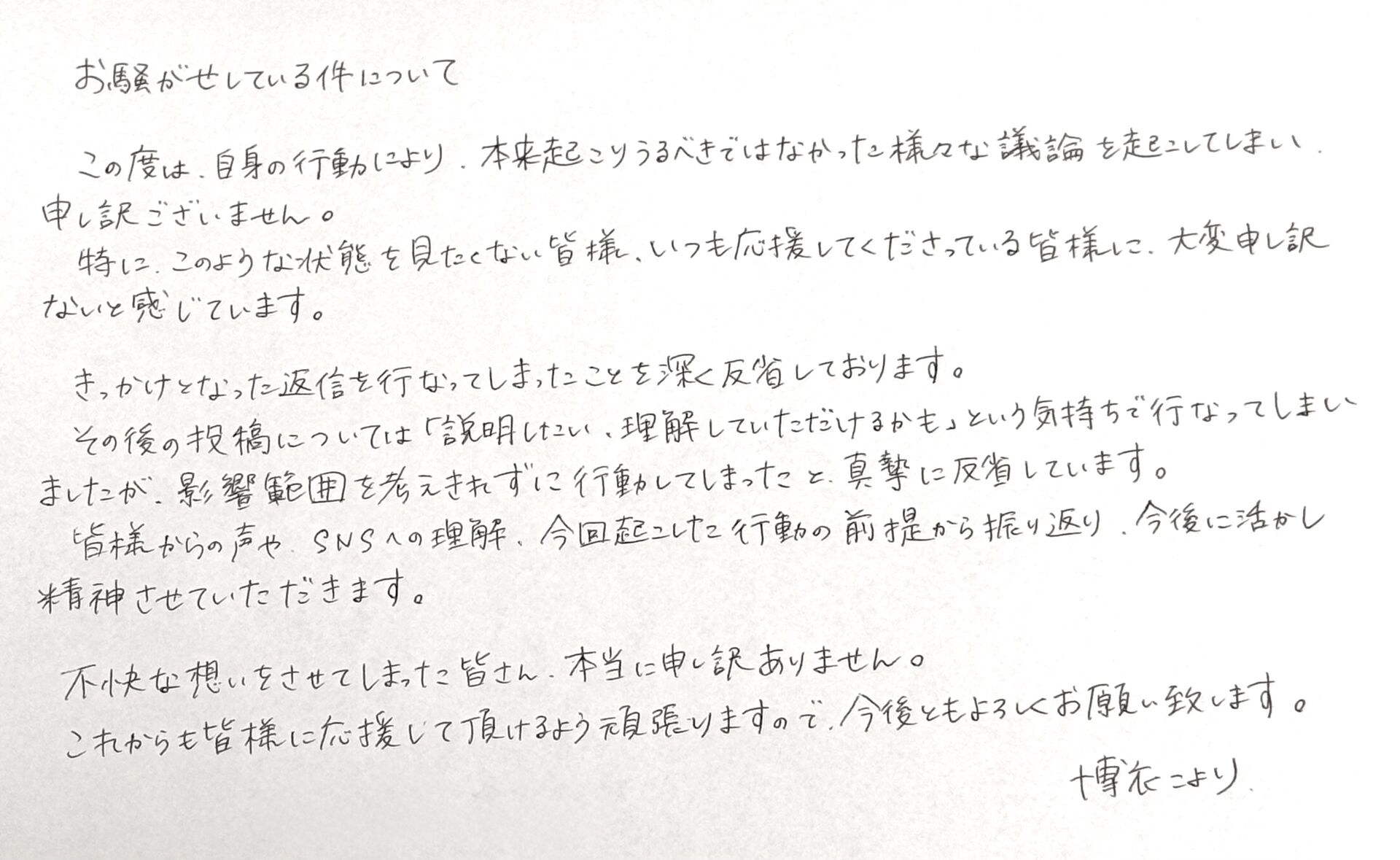 直筆謝罪文出すならこんな走り書きじゃなくて丁寧に書いた方が良いのにと思った