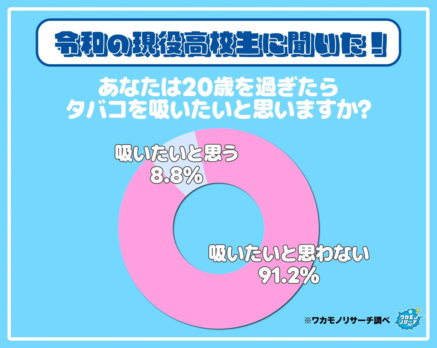ワカモノリサーチでは全国の現役高校生(男女)に「20歳を過ぎたらタバコを吸いたいと思いますか?」というアンケート調査を実施。