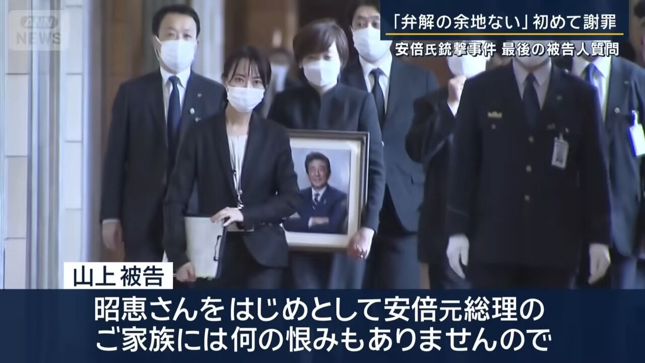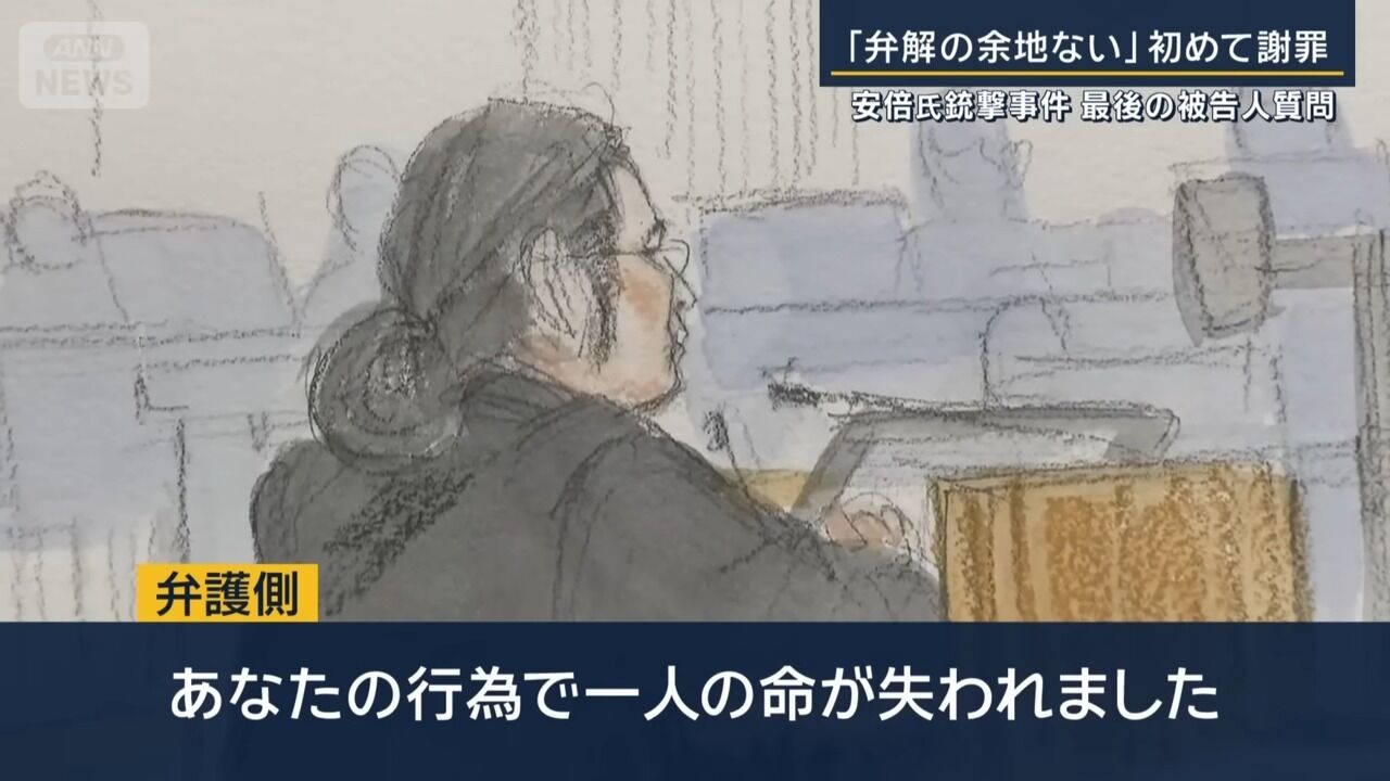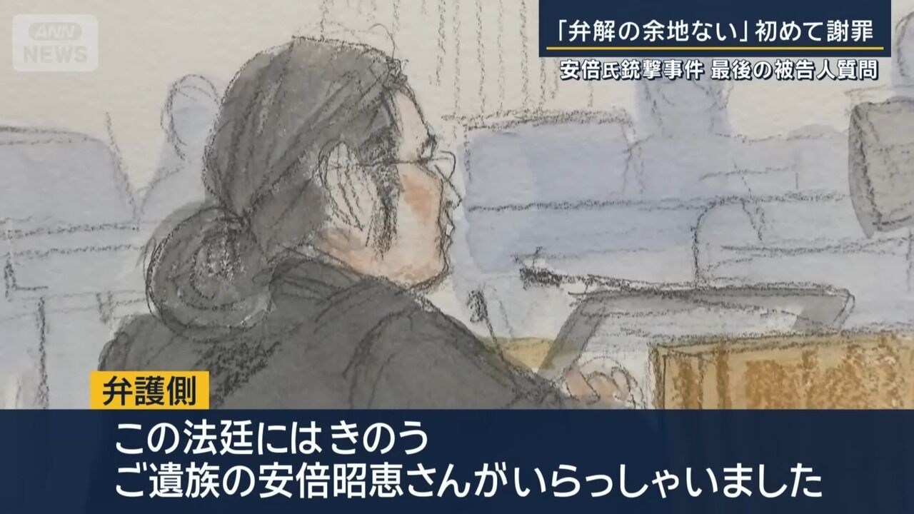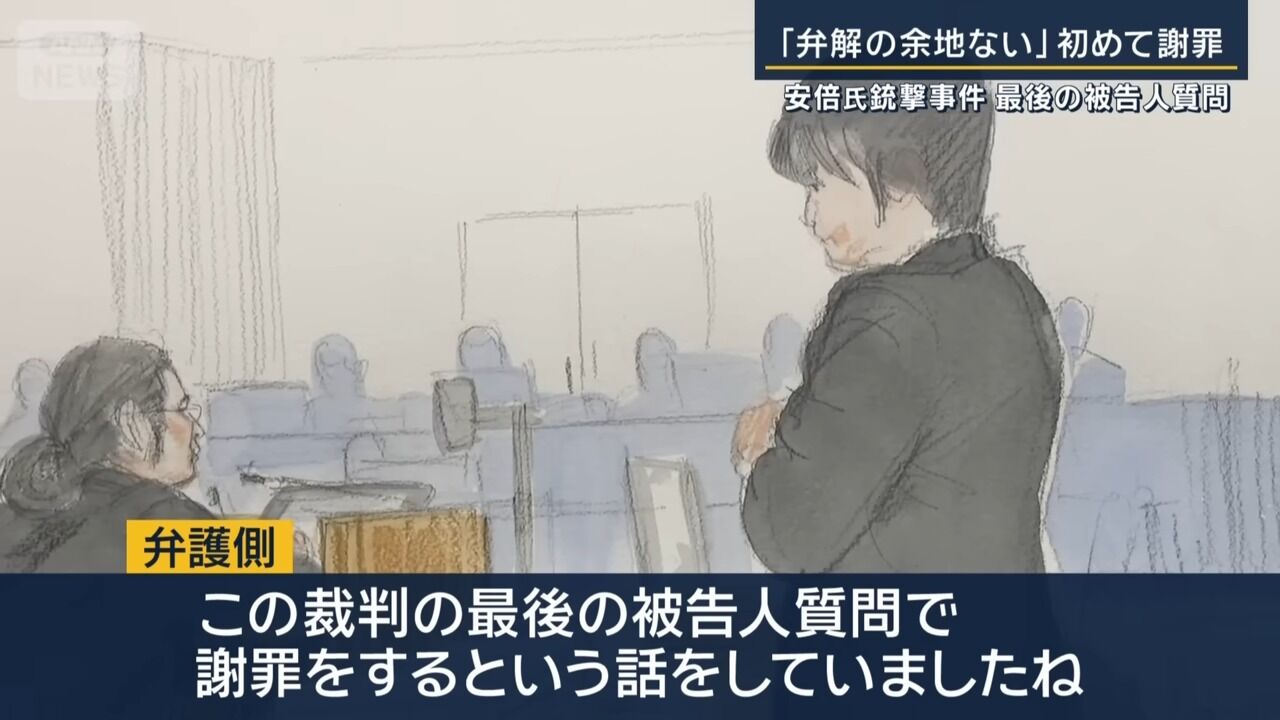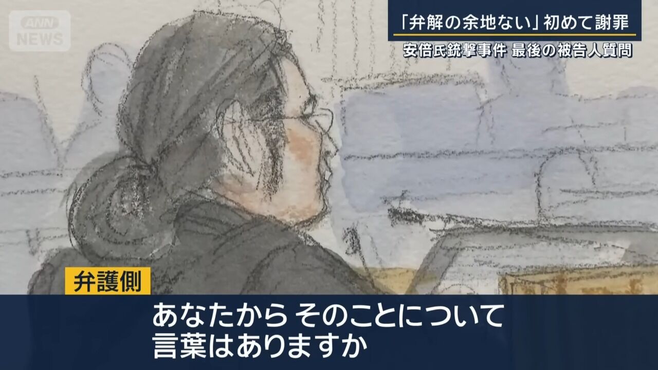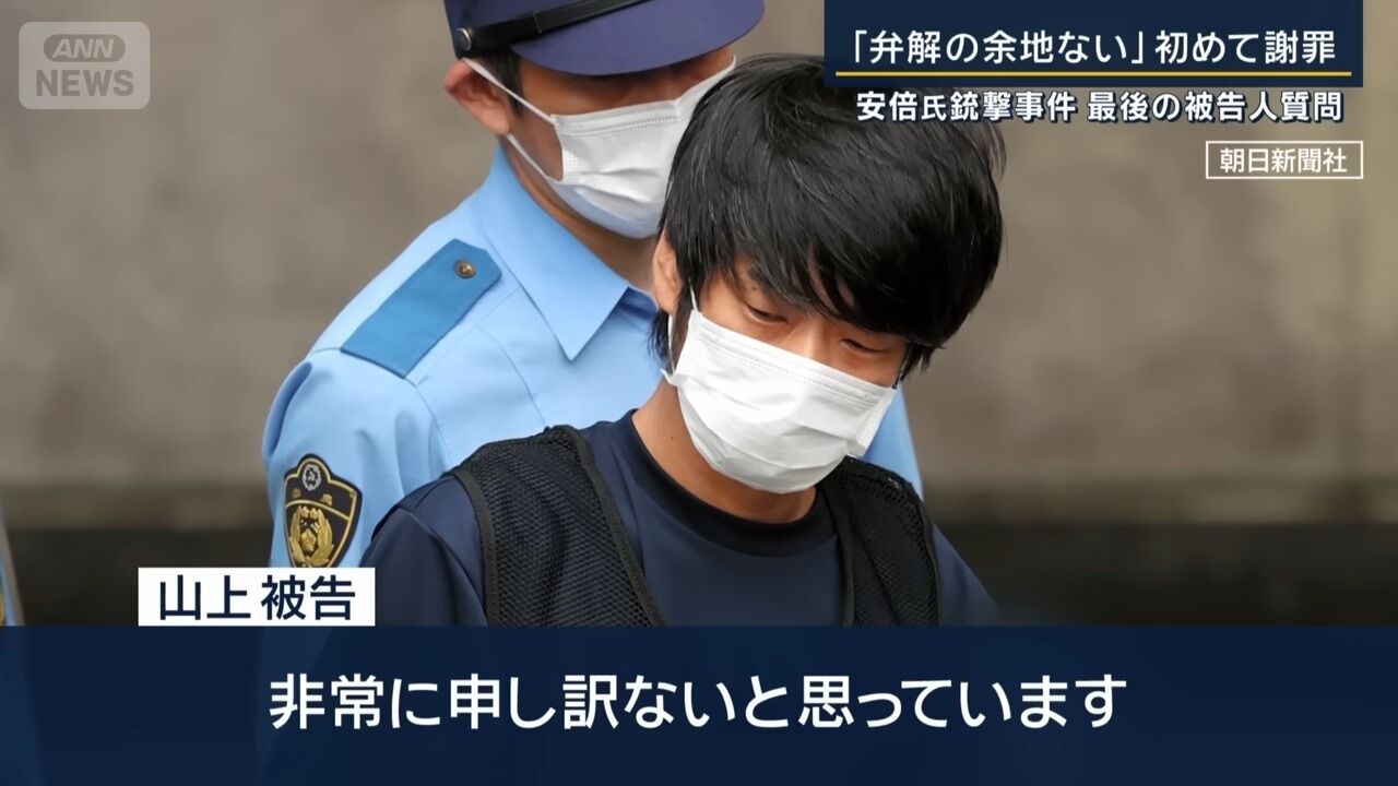 「弁解の余地ない」山上被告が初めて謝罪 安倍元総理銃撃事件 最後の被告人質問