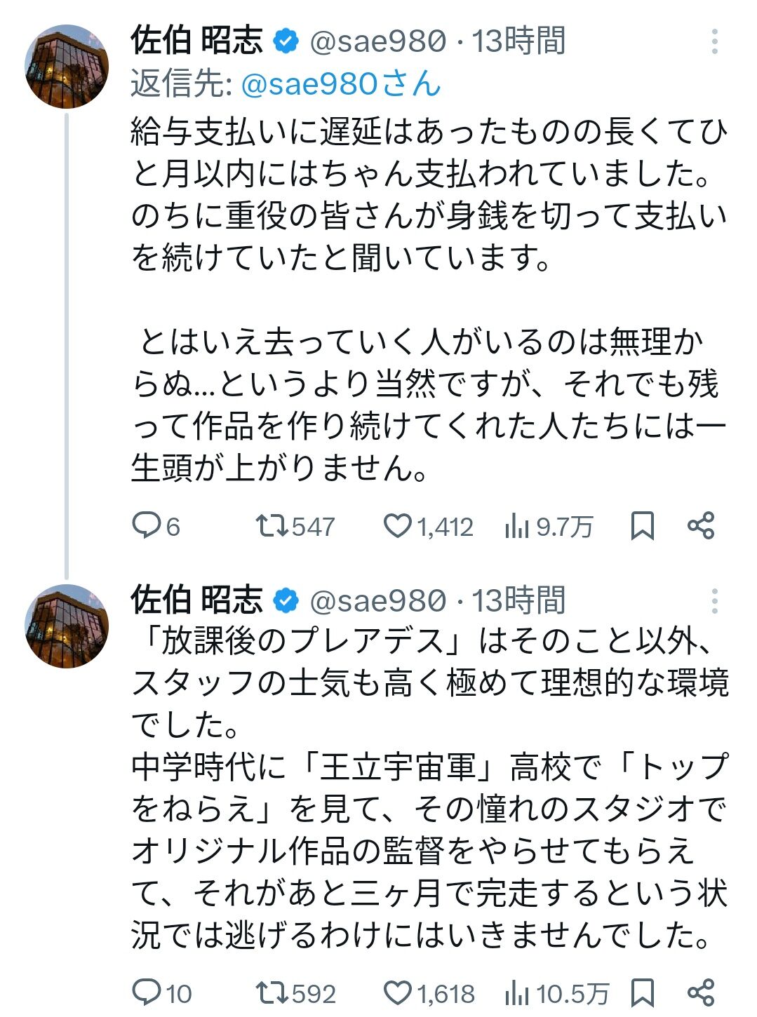 - とっとと逃げ出したやつが俺たちこそがガイナックスだって見苦しすぎない?