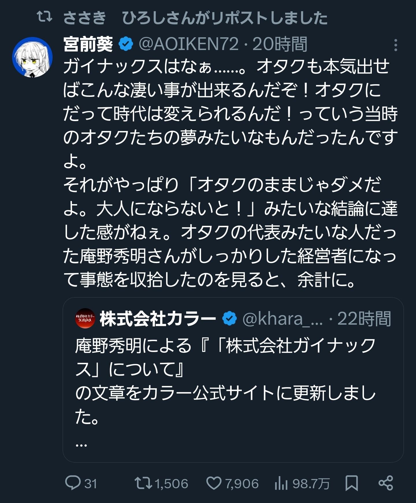 これリポストしてるって事はガイナックスはずっとオタクのノリで後先考えずやってけって思ってるんかな