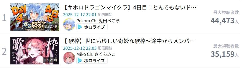 さくらみこさんの配信と兎田ぺこらさんの配信開始時間が