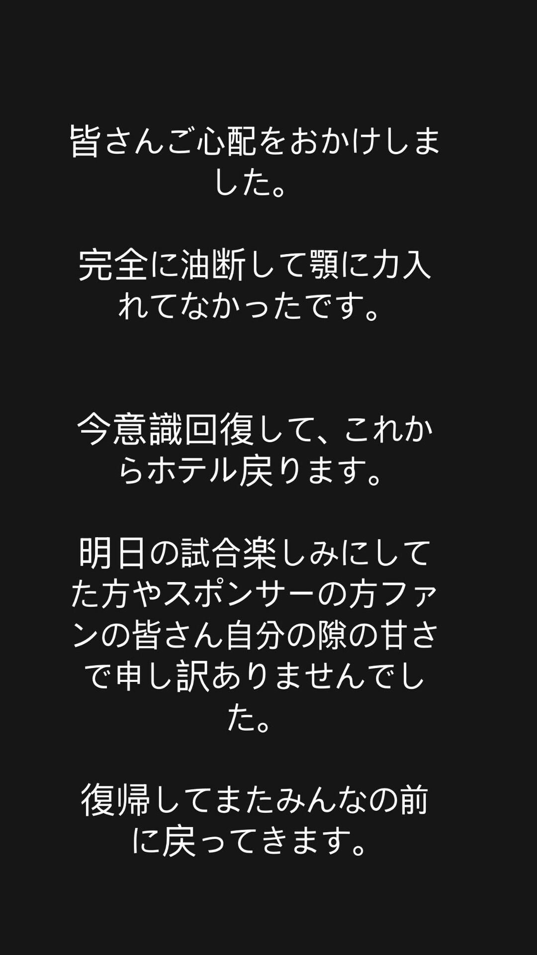 皆さんどこも怪我してなくて、頭と顎が痛いくらいで、来年必ず盛り上げに返ってきます。 pic.twitter.com/Kzj3miCLLc