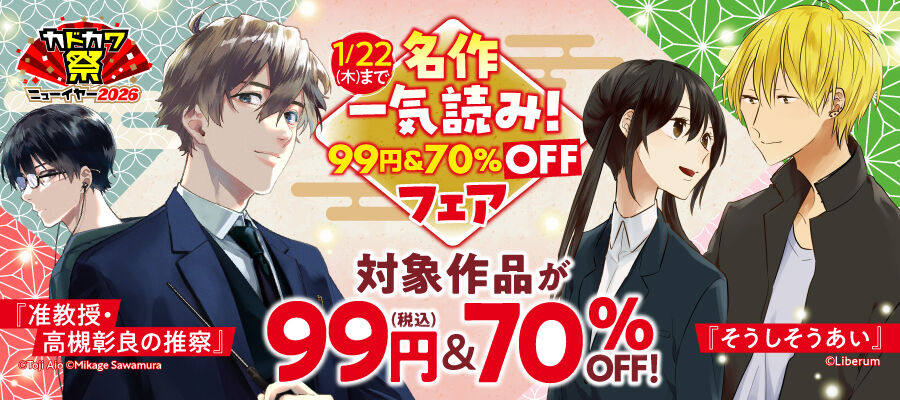 「カドカワ祭ニューイヤー2026」第2弾開催!!KADOKAWAの人気作品が「最大70%オフ」、「最安33円」で買えちゃう新年最初の超絶激安セールがきたあああああ!!