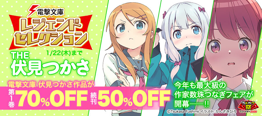 伏見つかさ先生の作品が1巻70%オフ&続巻50%オフ