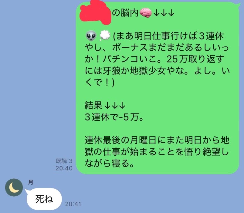 - 会話内容的に投稿主もパチカスで草