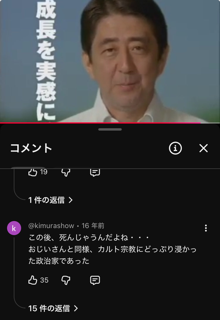 - 事件以前から安倍と統一教会の関係は有名だったし変なコメントでもないかな