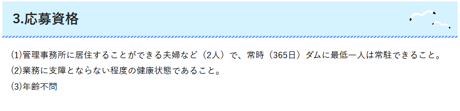 知る人ぞ知る、宮崎県ダムの住み込み管理人募集がまた出てる。灯台守ならぬダム守。2人ペア(夫婦or兄弟等)で月25万円。家賃光熱費タダ。業務は朝9時の気象観測と軽微な点検、ダムカード配布など。兼業可だから、テレワークの人すごくいいと思う!1月31日締め切り!https://t.co/DbRmat9fq4 pic.twitter.com/imODjxk9tm