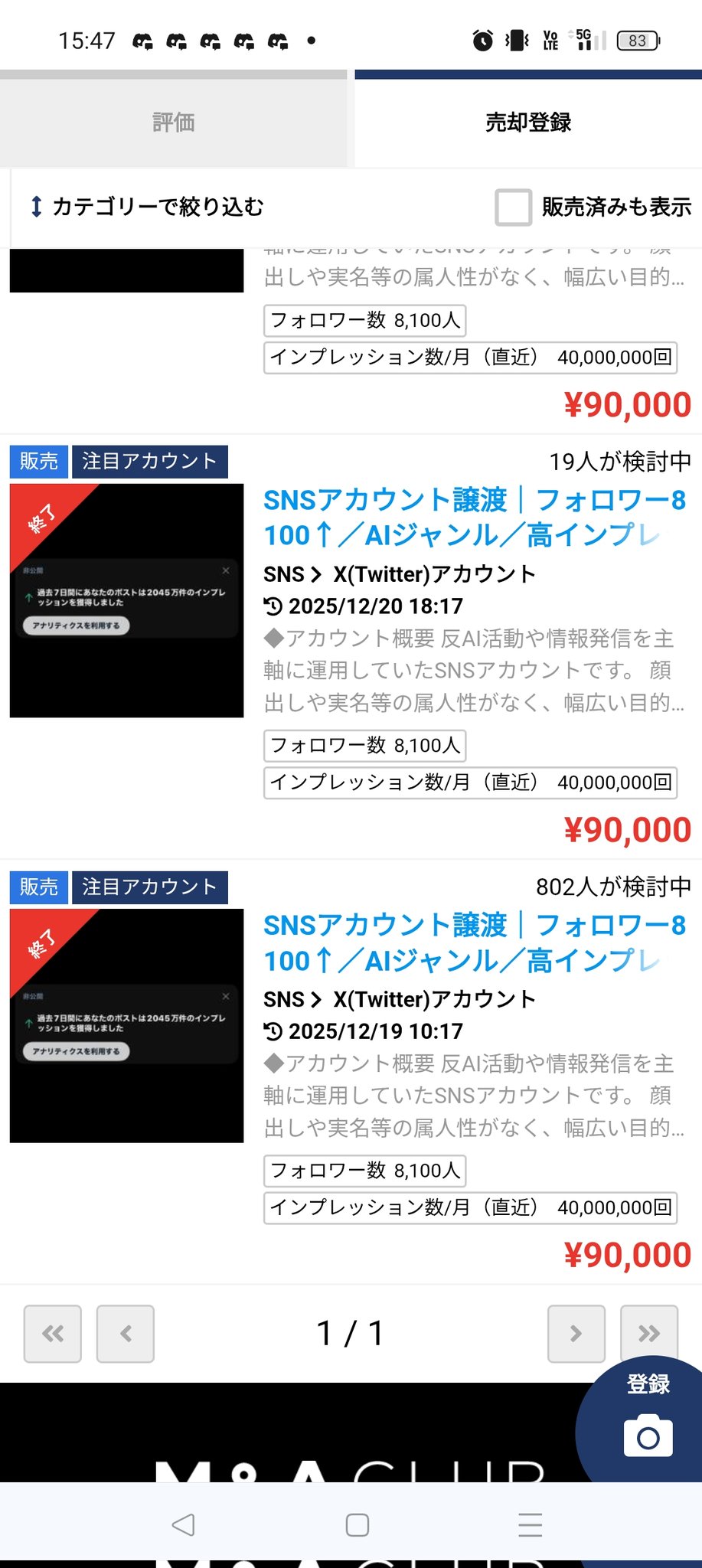 - このフォロワー数で9万で売れるのか。じゃあ俺のアカウント桁一つ高く売れるか、ワンチャンw